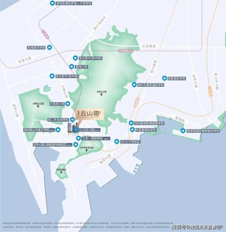 项目自带一所18班幼儿园,项目不远处就是赤湾学校(九年制,南二外挂牌,学校规模为36个班);周边还有九年一贯制学校(规划中)、北师大南山附校高中新校区、深大附中高中部、南山中英文学校、深圳贝赛思国际学校、深美国际学校等教育资源。