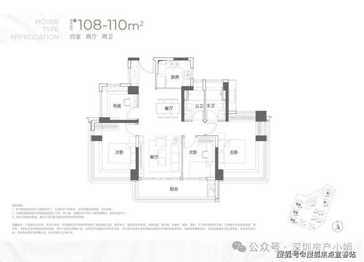 建面约110㎡ 四房两卫• 格局:竖厅+双龙抱珠设计,南北通透,动静分区合理,双卫紧邻更便捷。• 亮点:6.1米大阳台延伸景观视野,主卧与两个次卧均带270°飘窗,采光通风俱佳;东南向看小区花园,西南向远眺小南山,部分户型无遮挡观景。