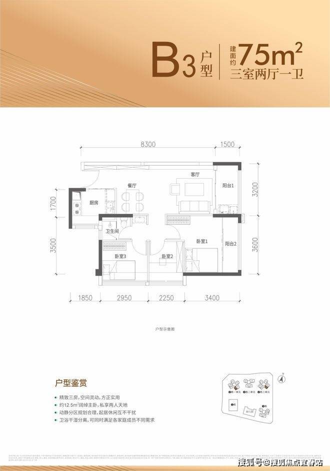 75㎡的3房2厅1卫,折后总价303-354万/套,折后单价4.07-4.73万/㎡。