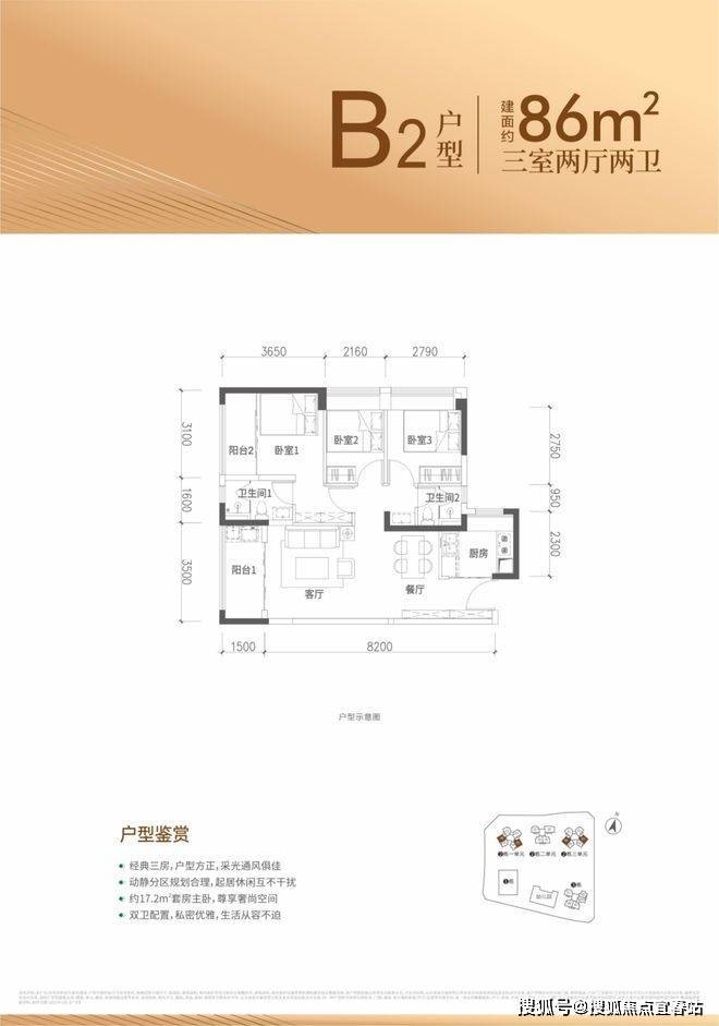 86㎡的3房2厅1卫,折后总价365-405万/套,折后单价4.26-4.72万/㎡。