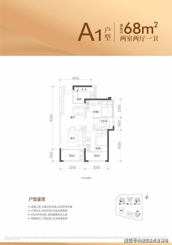68㎡的2房2厅1卫,折后总价287-315万/套,折后单价4.25-4.64万/㎡。