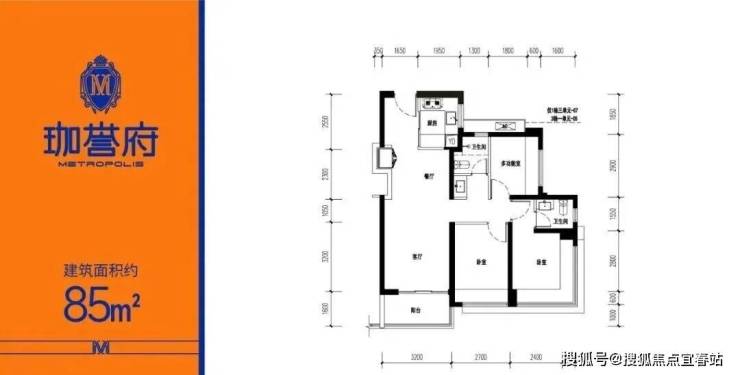 | 约85㎡(横厅)三房两厅两卫【总价约415-455万】