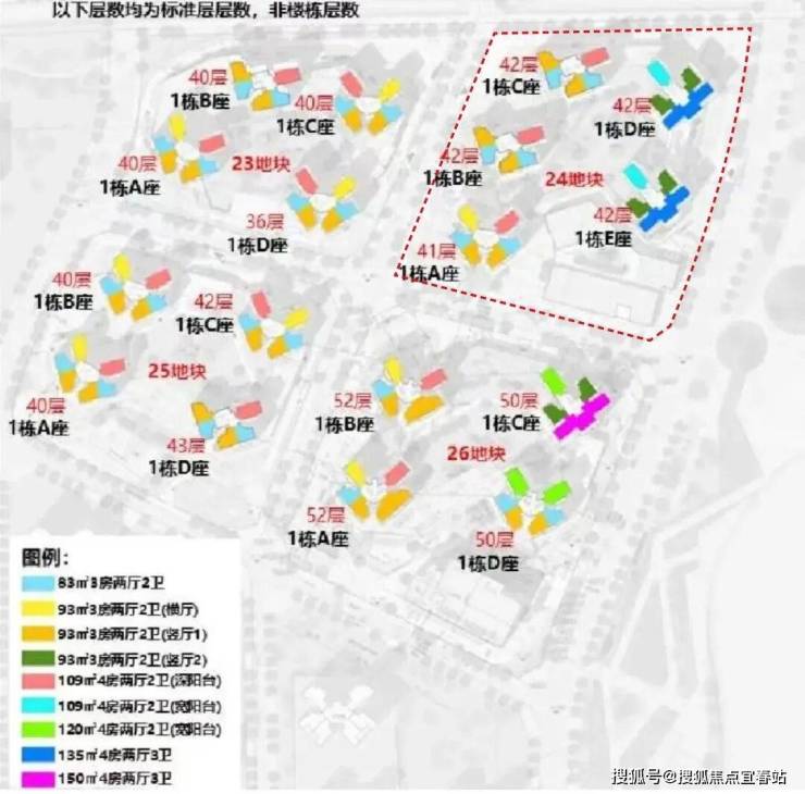 共规划5栋45-47层高的住宅,分别是1栋住宅,2栋A、B、C座住宅,3栋住宅,4栋是1所18班幼儿园,分别是3梯5户/3梯6户设计。