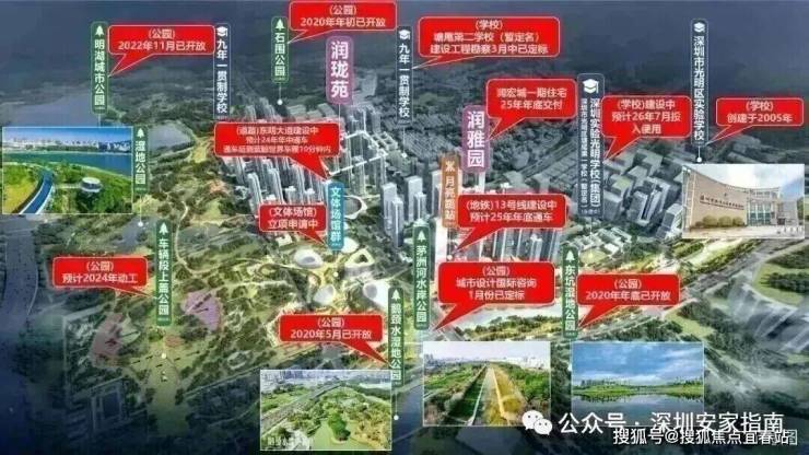 润雅园作为项目首发地块,将规划建设3栋47层超高层住宅和一栋4层18班幼儿园以及部分底商配套,东侧为茅洲河公园绿道。