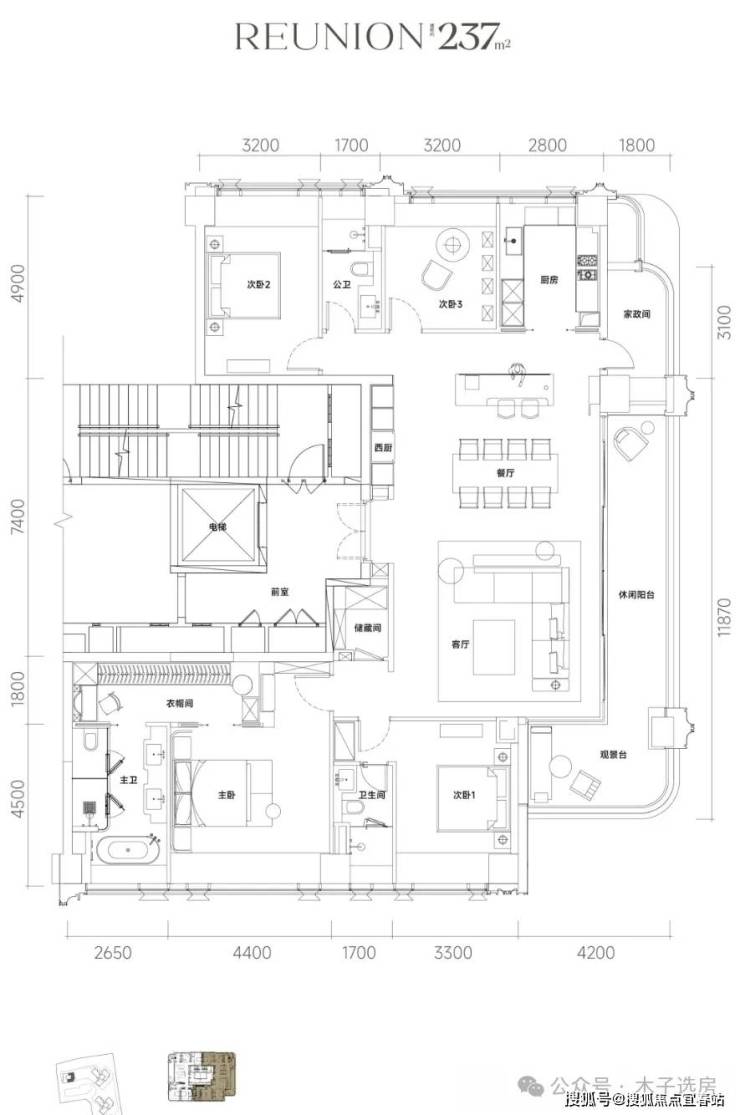 首期推出的1栋产品主打建面约197-235㎡四房大平层,全部为精装交付,纯粹的大平层社区定位明确,没有7090政策限制,确保了客群圈层的纯粹性和社区的高端质感。