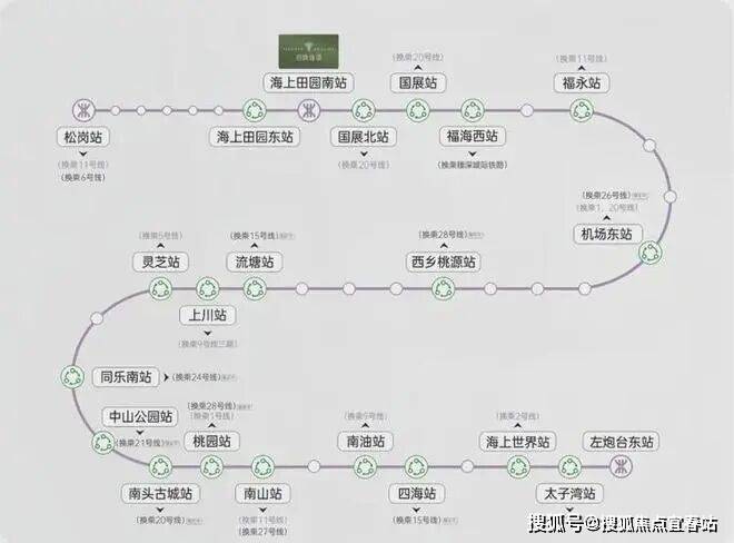 项目出门就是12号地铁线“海上田园南站”,1站到国展北可换乘20号线,5站到福永可换乘11号地铁线,公路方面,距广深沿江高速入口仅500米,直达深圳湾;可至中山,1小时通达东莞滨海湾。此外,项目步行可达福永码头,乘船直达香港中环;距深圳宝安国际机场仅8公里。