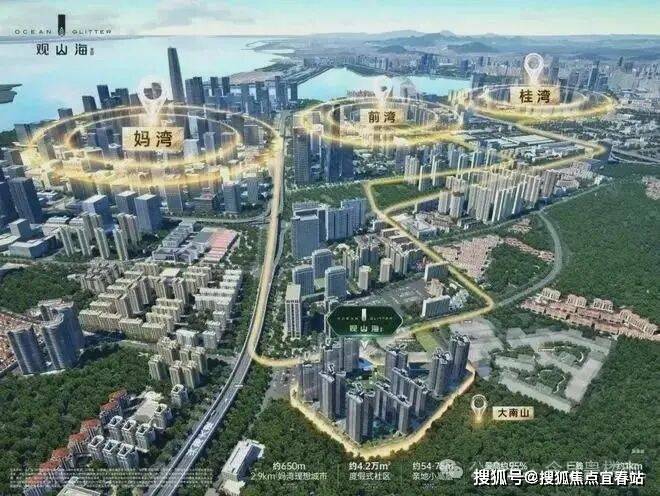 项目名为【远洋·观山海家园】,位于兴海大道与沿山交汇处东南侧,大南山脚下,距离5号线“荔湾站”约650米。地处当今深圳最具发展潜力的前海合作区。项目由远洋集团旗下的深圳市远荔实业有限公司开发建设,总占地面积约4.24万平方米,总建筑面积约16.3万平方米,容积率仅为2.65,绿化率高达30.85%。
