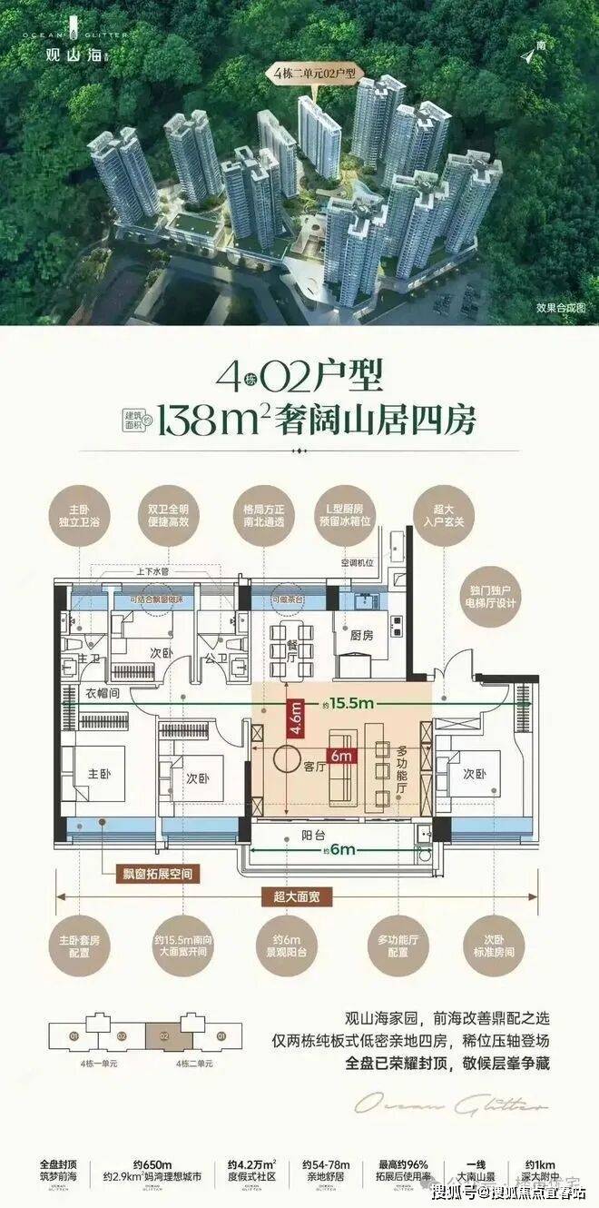 项目容积率仅约2.65。项目共870套住宅,涵盖建面约95㎡3房、约110-115㎡4房以及约138㎡4房。