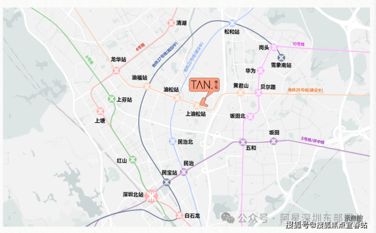 直线距离地铁25号线(一期)上油松站(建设中)约100m,同时25号线(建设中)与4号线、22号线(建设中)、27号线(规划中)交汇,一站一换乘,快速畅达南山深圳湾超级总部基地、福田CBD、坂田华为基地、罗湖等核心区。