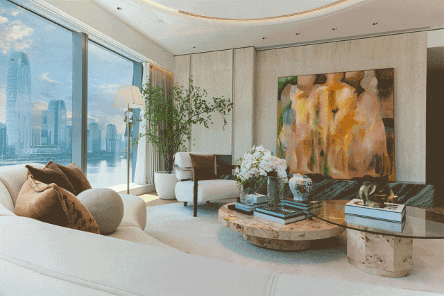 从弧形玻璃幕墙外立面,到新加坡式空中花园,再到高定会所及室内设计等,只为42户业主带来更具辨识度的CBD都会封面。