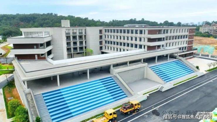 项目毗邻花都首所公立广外附学校,为九年一贯制,设36班小学+18班初中。校园占地约5万㎡,配建体育馆、泳池、篮球场、排球场及400米跑道,目前已完工,预计2025年正式开学。