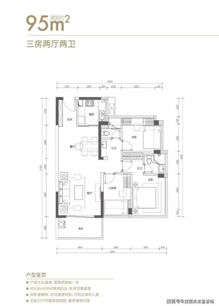 全屋凸窗:卧式、厨房、卫生间,全屋凸窗设计,加大景观面及采光面;