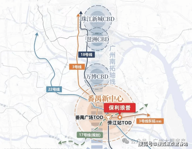 一站即达番禺广场站,里面有地铁3号线、18号线、22号线、3号线东延段、17号线(规划中)五轨交汇,一站畅行琶洲,两站通勤珠江新城