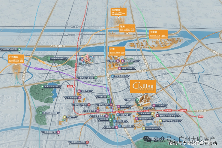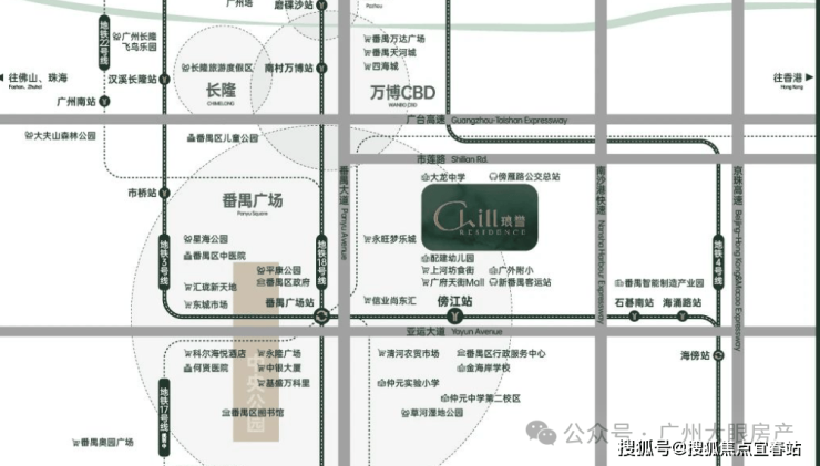 项目位于番禺广场板块,楼盘就在番禺客运站北侧,龙湖金地天峯旁边