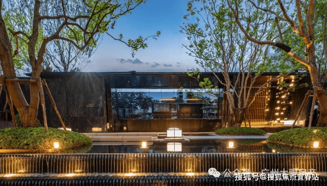 夜幕降临时,富有层次感的氛围灯,零星点缀,映照在潺潺跌水、安哥拉黑石台上,又给人一种高贵又内敛的感觉。