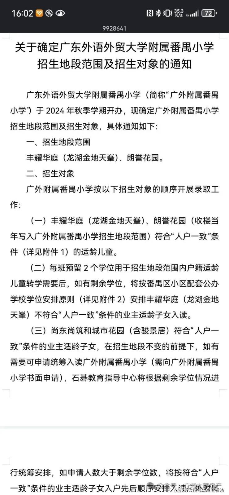 根据2024年教育局发布的番禺区教育划分,是已经把该项目划到了天峯的广外附小