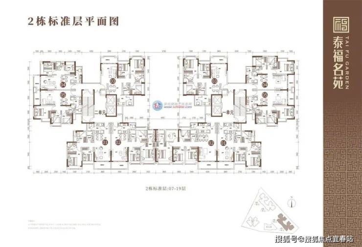 2栋户型7-19层分布图: