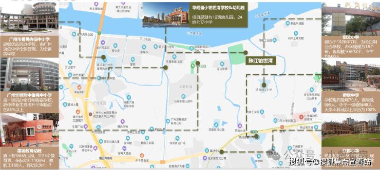 项目周边有:华师附中番禺学校及附属小学、番禺执信中小学等学府环绕,3-18岁一站式无忧教育