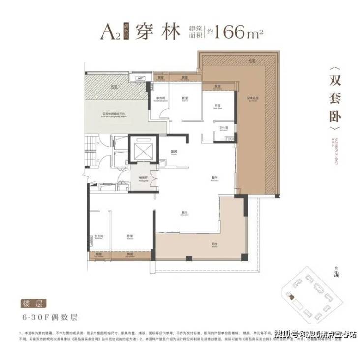 建面约 166㎡户型:此户型露台采用 L 型设计,搭配约 40 - 100㎡的 L 型空中庭院,可适配多元使用场景,能满足业主种花种草、会友品茶乃至家庭欢聚等需求。住宅层高设定为 3.12 - 3.15 米,优化了室内空间感受,空间更显通透。折算单价约 2.23 - 2.50 万元 /㎡,总价在 368 - 415 万之间。