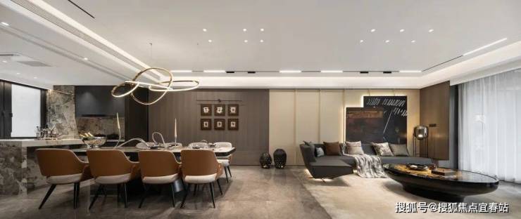 客餐厅公共区域,采用LDKB一体化开放式设计,整体纵深感更为阔绰,满足多样的聚会、宴会场景演绎。