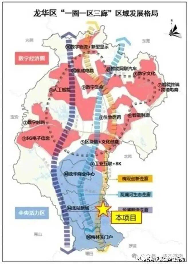 龙华“一圈一区三廊”重点发展格局: