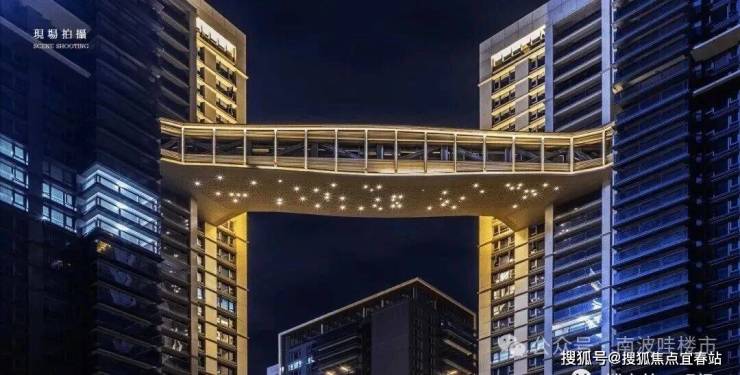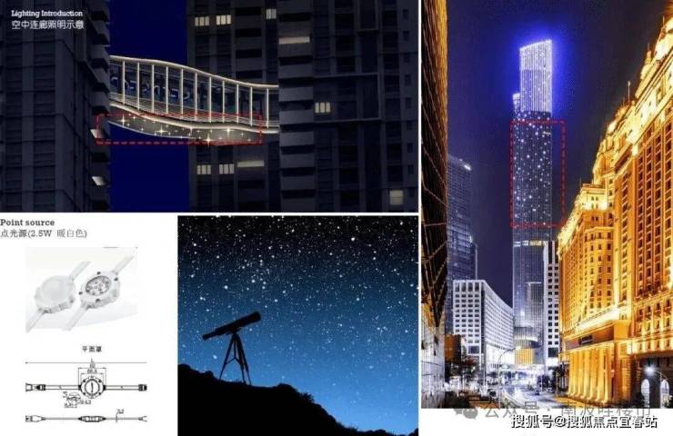 云玺锦庭是一座精心设计得恰到好处的建筑,空中廊桥、顶部的空中庭院,将原本独立的两栋建筑在高空连接起来,形成无障碍观景平台,是居民观看日落、欣赏城市夜景的绝佳去处。空中云厅采用满足适应活动的低照度,用一系列漫射、低矮的点光源进行装饰。连廊下层采用不锈钢进行装饰,利用精细工艺打磨出不同程度的哑光,从而映射出 “月下星光” 的光影意境。