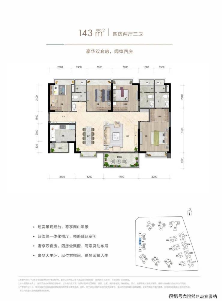 约143㎡四房两厅三卫:豪华双套房,阔绰四房