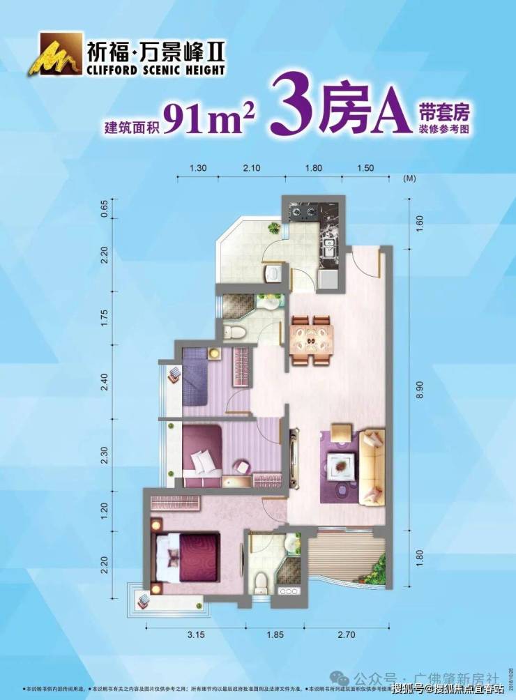 ·建面约91-101㎡的户型设计成宽阔3房,不仅能满足家人的居住需求,而且居住舒适度相当高;