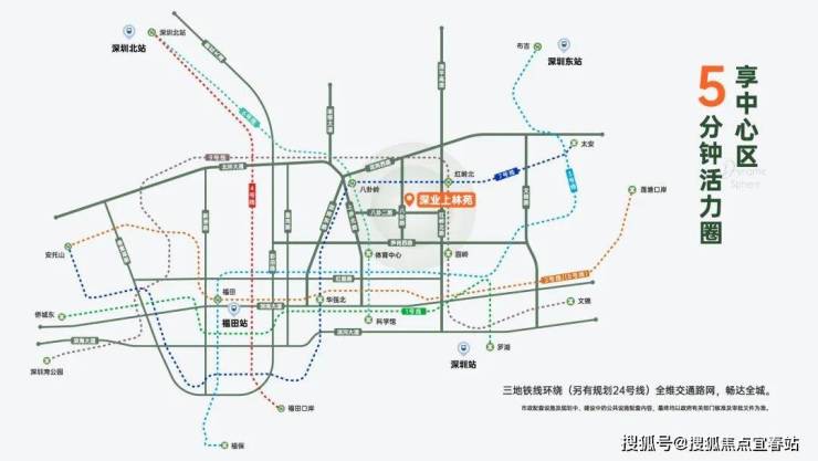 20分钟内抵达城市枢纽(福田高铁站、深圳北站、深圳站、福田口岸、皇岗口岸),出行方便。