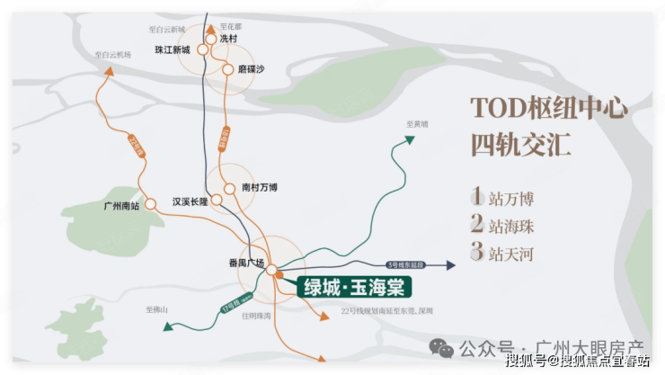 番禺广场的交通含金量毋庸置疑,作为18号线、22号线、3号线的交汇站,可以轻松通达广州核心区。