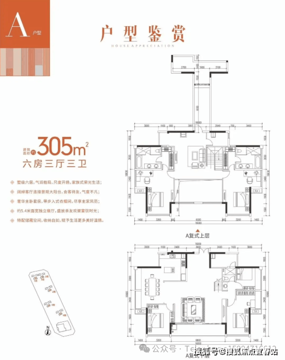 建面约147-305㎡复式四至六房:复式结构,空间更加灵活多变,适合追求高品质生活的家庭。