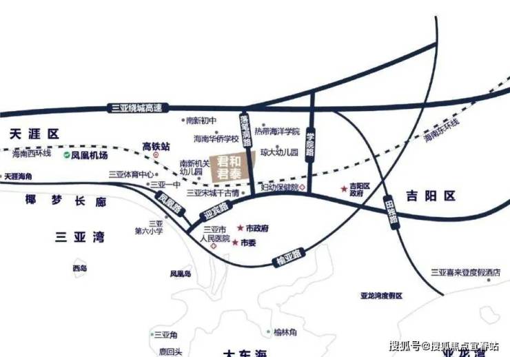 君和君泰项目位于三亚环城高速荔枝沟出口处(琼州学院对面),属于政府重点规划的月川—荔枝沟—抱坡岭片区,该区域重点规划定位为文化教育、商业贸易核心区;由学府教育区、公共服务区、行政商务区、生活配套区、文化商业区及品质居住区所组成。