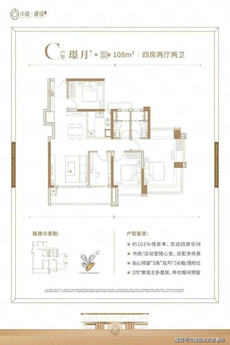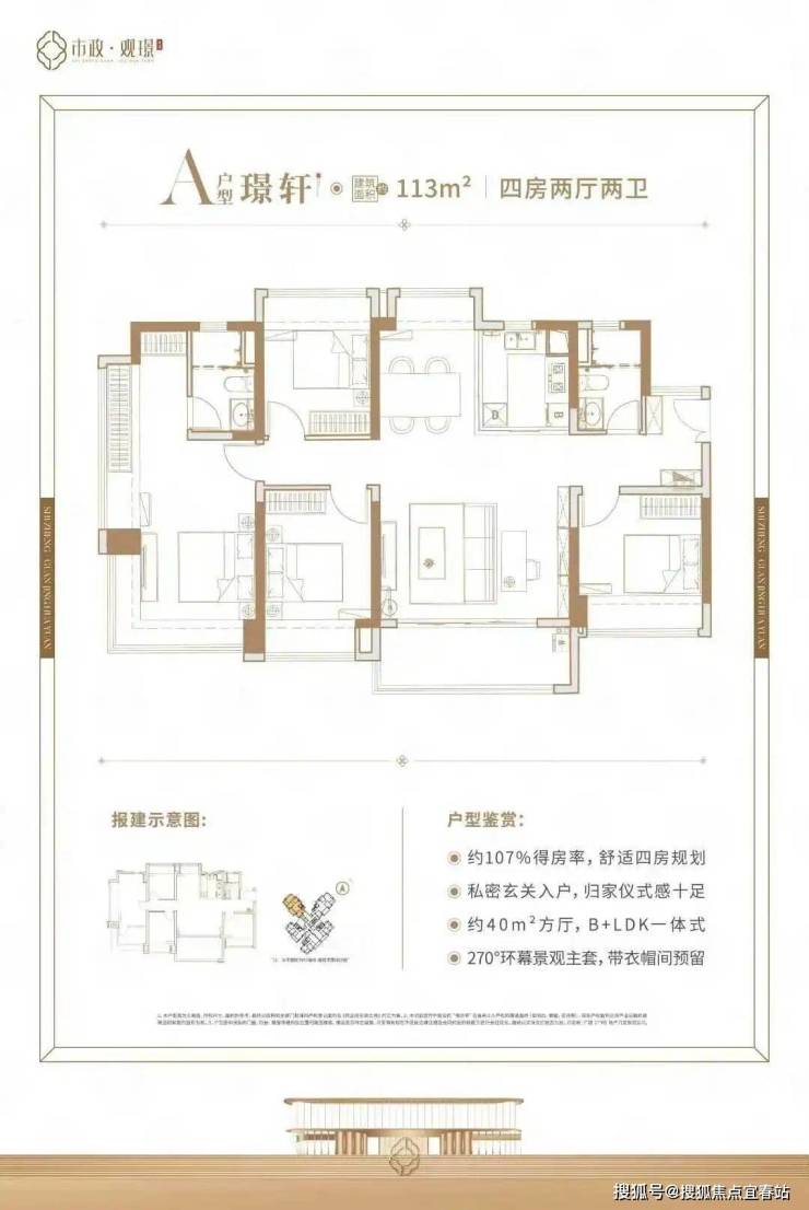 建面约113㎡四房:改善之选,40㎡大方厅是核心
