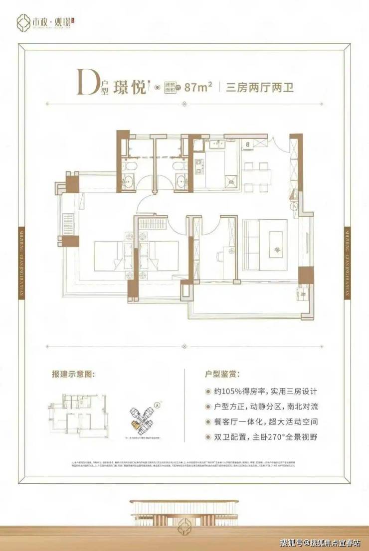 建面87㎡三房刚需上车优选,阳台是惊喜
