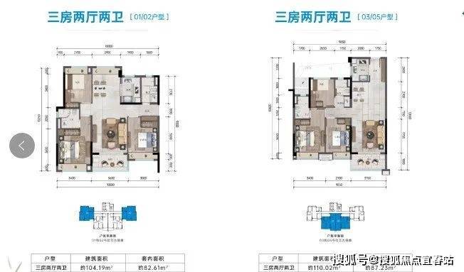 ③ 全湾区最具性价比的小三房:建面约104-117㎡,6-14层高的花园洋房, 均主打三房套卧,尤其吸引早期湾区小两房的购房者置换、吸引养老 度假;