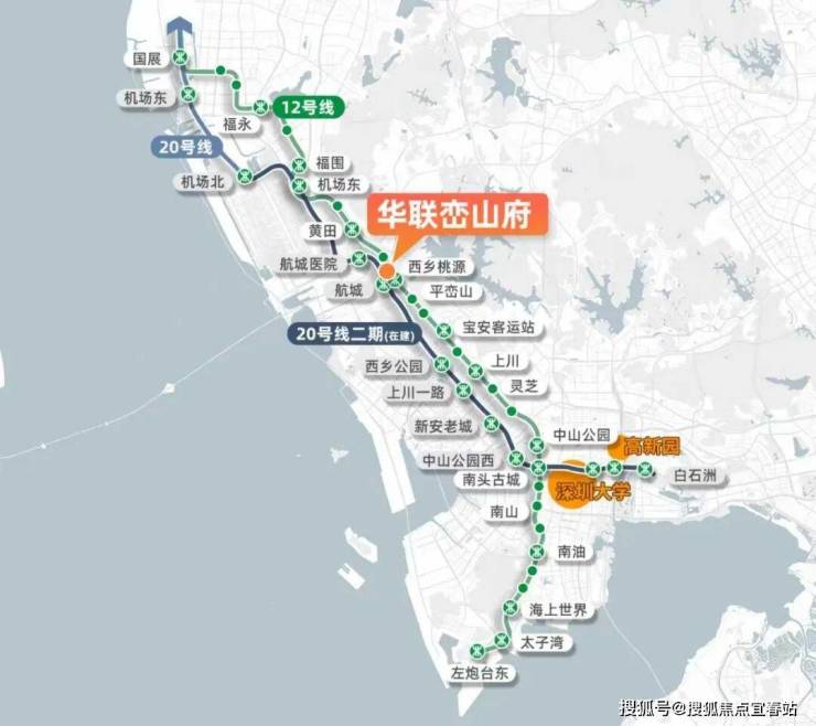未来从华联峦山府出发,2站到机场,4站到企鹅岛,6站到南山科技园。