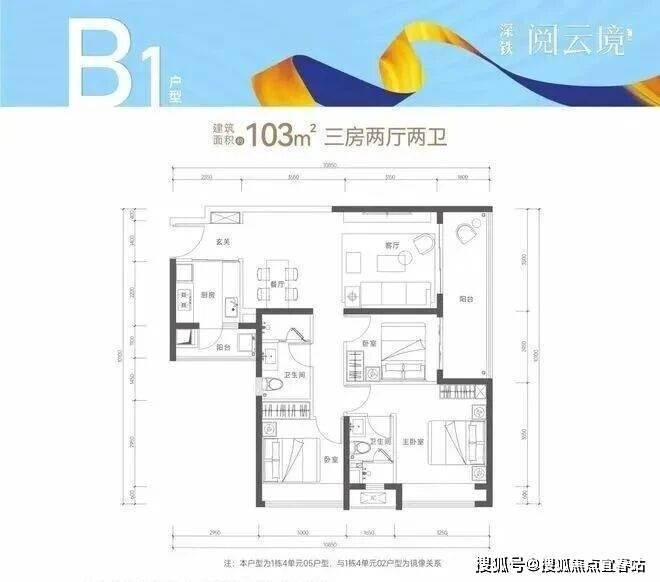【建筑面积103㎡3房2卫】