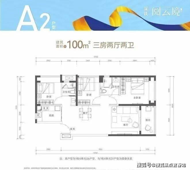 【建筑面积100㎡3房2卫】