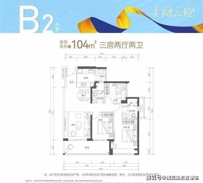 【建筑面积104㎡3房2卫】