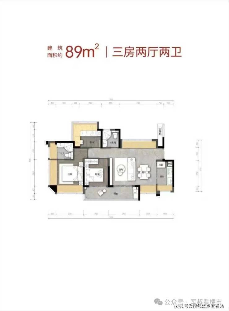 • 建面约89㎡的三房两厅两卫