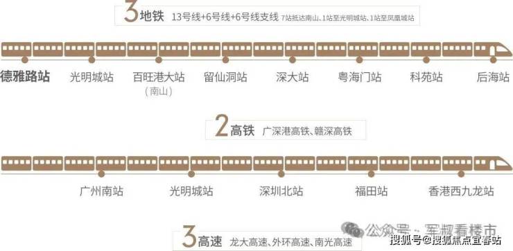 光明城站2地铁1高铁联通大湾区,高铁可实现30分钟连通深圳龙华/福田、广州、香港;《光明区十四五规划》提出围绕光明城站建设枢纽型交通强区,打造产业集聚的智造高地和功能完善的城市会客厅,造就下一个“深圳北站”。