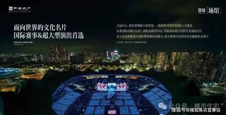 大运中心拥有深圳最大体育场,一场两馆可同时容纳约8.1万观众,具备国际田联(IAAF)、国际泳联(FINA)等最高标准认证的专业场馆设计,是国际赛事与超大型演出的首选。项目头排对望大运中心,,近享家门口的世界盛会。(信息来源:龙岗区文化广电旅游体育局官网)