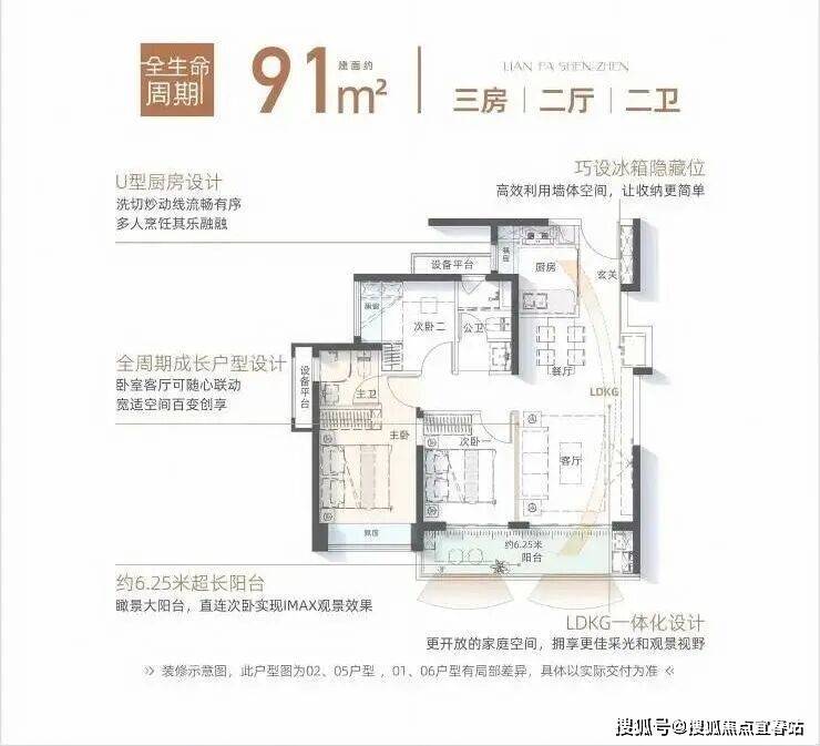 亮点:约6.25米宽景阳台,可打造空中花园;动静分区明显,客卫干湿分离。