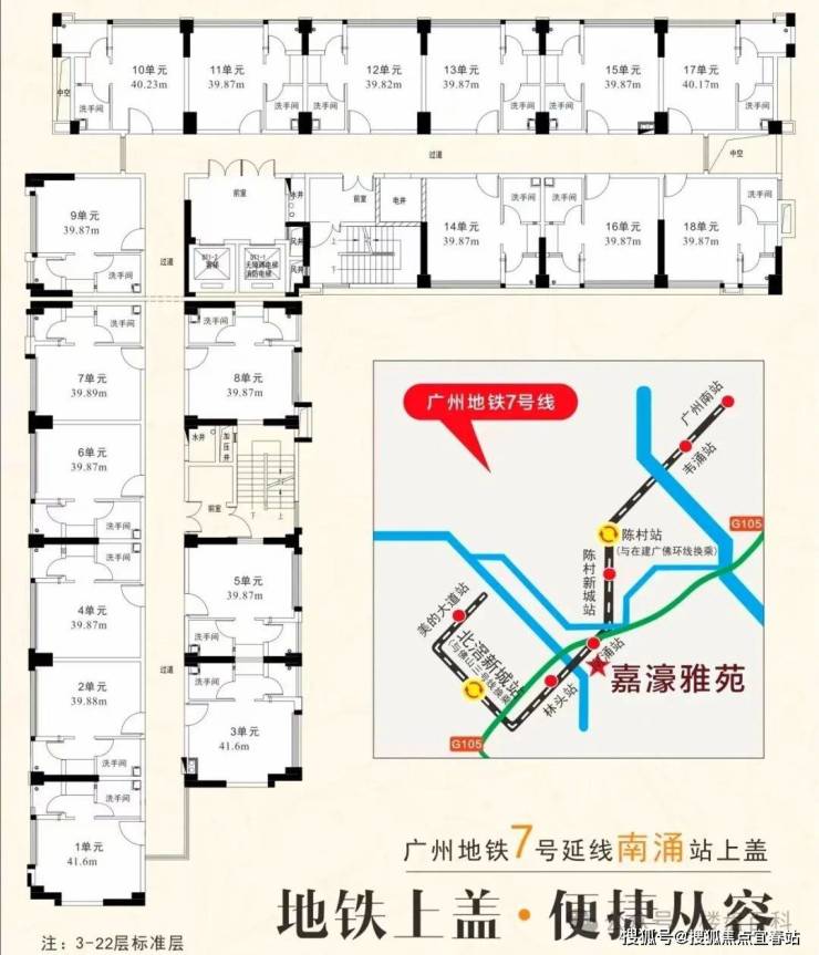 楼栋总高:22层(公寓2梯18户 ,住宅2梯5户)层高3米