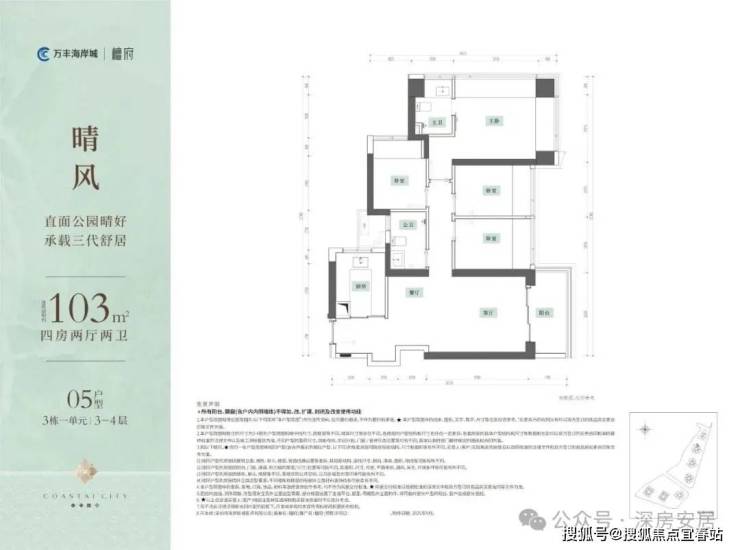 这次首推的万丰海岸城檀府A313-1568地块,总占地面积约1.89万㎡,总建筑面积约17.95万㎡,计容建筑面积约12.87万㎡,容积率6.79,绿化率40%,共由4栋45-47层高的住宅组成,其中2栋1单元住宅47F,2栋2单元住宅45F,3栋1单元住宅45F,3栋2单元住宅46F,4栋是1所12班制幼儿园。