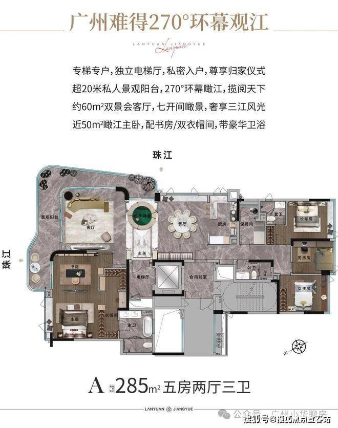 4,主打193/285平豪宅户型,所有户型均为专梯入户+江景单位,没有辜负白鹅潭顶级江景。