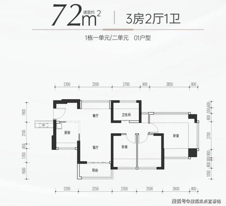 【户型】建面约72㎡三房两厅一卫/约82㎡三房两厅两卫/约95㎡三房两厅两卫