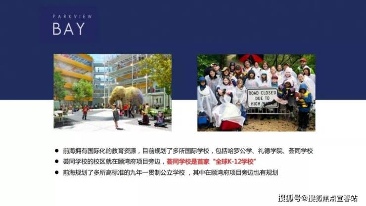 前海拥有国际化的教育资源,目前规划了多所国际学校,包括哈罗公学、礼德学院、荟同学校 。而荟同学校的校区,就在颐湾府项目旁边,荟同学校是首家“全球K-12学校。