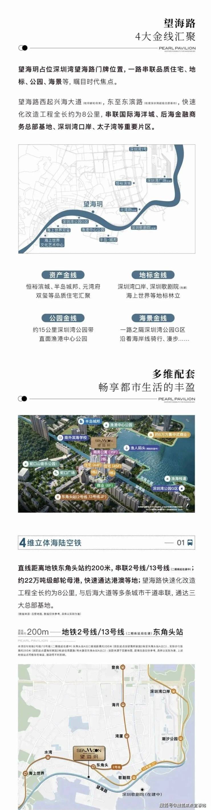 项目具体位于望海路与湾厦路交汇处,毗邻蛇口广场,步行可达滨海休闲空间;更紧邻地铁 2 号线、13 号线(建设中)东角头站,约 200 米的距离轻松实现 “地铁通勤自由”,无论是日常出行还是链接全城,都便捷高效。