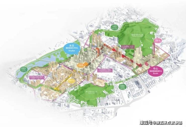 约84万㎡全景山水人文大城,集住宅、公寓、办公、商业等多元业态于一体,形成